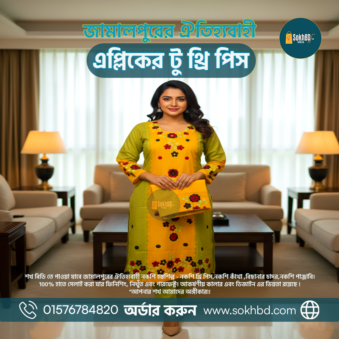 জামালপুরের ঐতিহ্যবাহী সম্পূর্ণ হাতের কাজের টু পিসের কালেকশন।